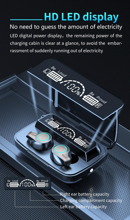 Bluetooth Earphones LED Wireless TWS with Microphone
